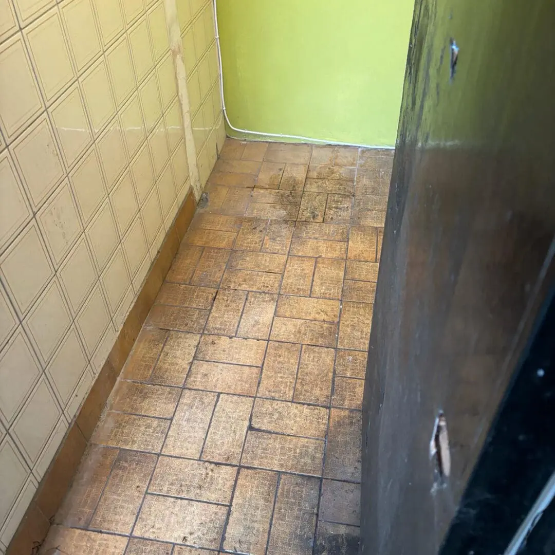 On small surfaces, such as bathroom walls, we use a special hand brush to clean the grout, on larger surfaces we can use a rotary tool to clean the grout.
